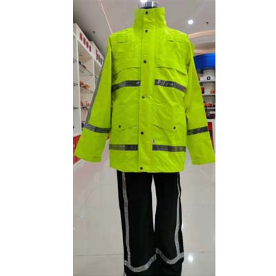 3、上衣面料顏色為熒光綠色,有效幅寬≥1.48m,單位面積質(zhì)量≤170g/m2、斷裂強力:徑向≥1300N、緯向≥1200N,撕破強度:徑向≥35N、緯向≥30N,透濕率≥6500g/m2*d,靜水壓:初始≥80kpa,20次水洗后≥50kpa,表面抗?jié)裥裕撼跏?ge;4級,20次水洗后≥4級;起毛起球≥3-4級,異味:無,PH值:4.0-8.5,甲醛含量≤75mg/kg,耐光色牢度≥4級,耐皂洗色牢度≥4級,耐干摩擦色牢度≥4級,耐濕摩擦色牢度≥4級,耐汗?jié)n色牢度≥5級。