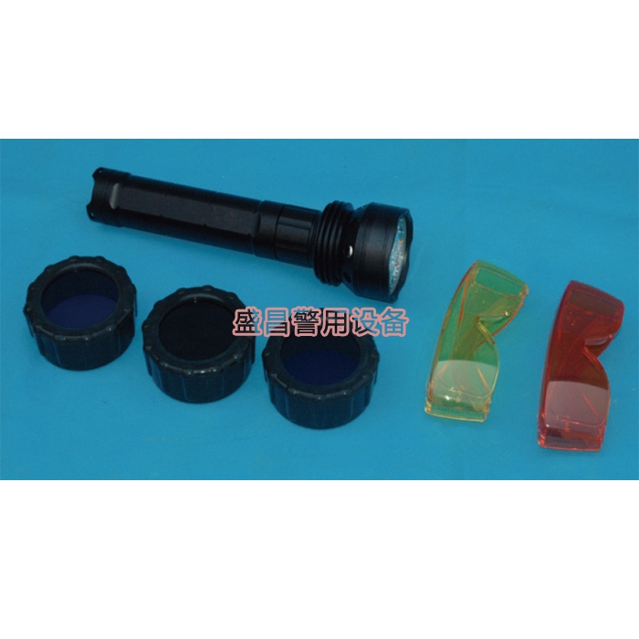 紫光照射物證,佩戴黃色眼鏡觀察熒光。