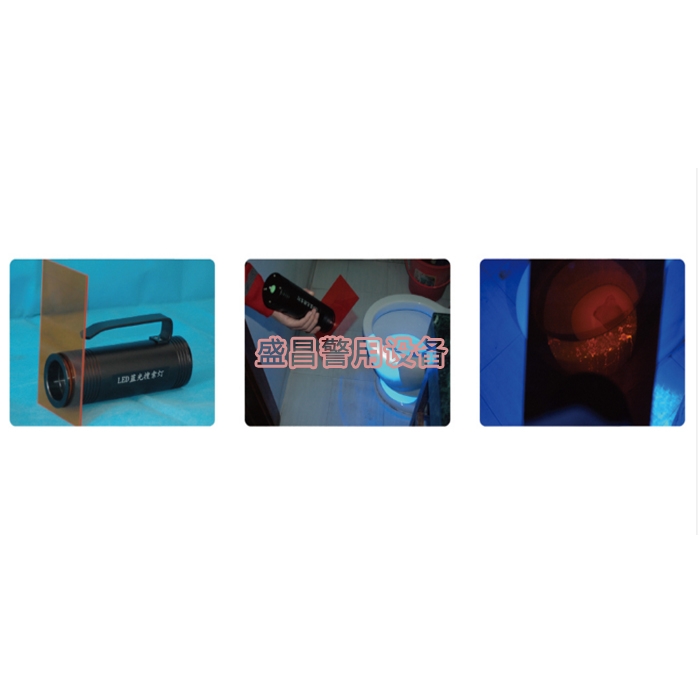 BTSS-Ⅳ型LED藍光搜索燈輸出均勻度很高的藍光,在搜索燈的前端安裝了橙色玻璃。在黑暗的環(huán)境下,用LED藍光搜索燈在現(xiàn)場搜索物證,透過橙色玻璃觀察物證,可直接觀察精斑、尿液、唾液、陰道分泌物、皮屑、炸藥、洗滌劑、纖維等物證的熒光。用藍光搜索燈照射熒光粉末顯現(xiàn)的指紋,透過橙色玻璃觀察可以觀察到指紋的熒光。